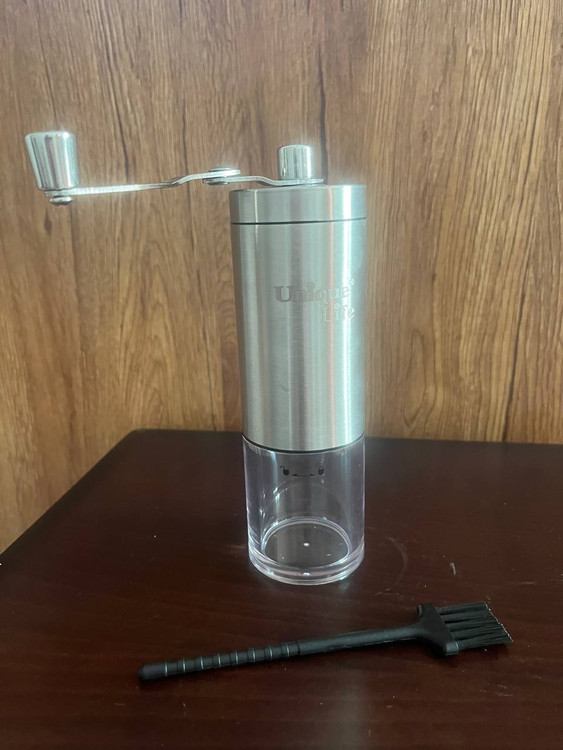 اسیاب دستی قهوه مناسب برای اسیاب دانه قهوه با محفظه ی شیشه ای و برس مخصوص برای تمیز کردن دستگاه ساخت کشور چین