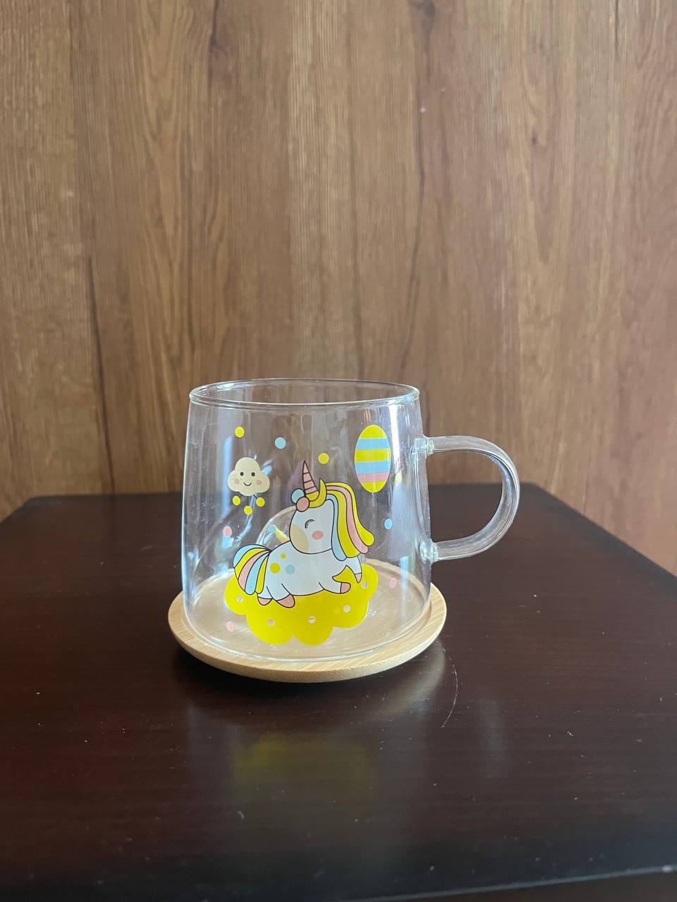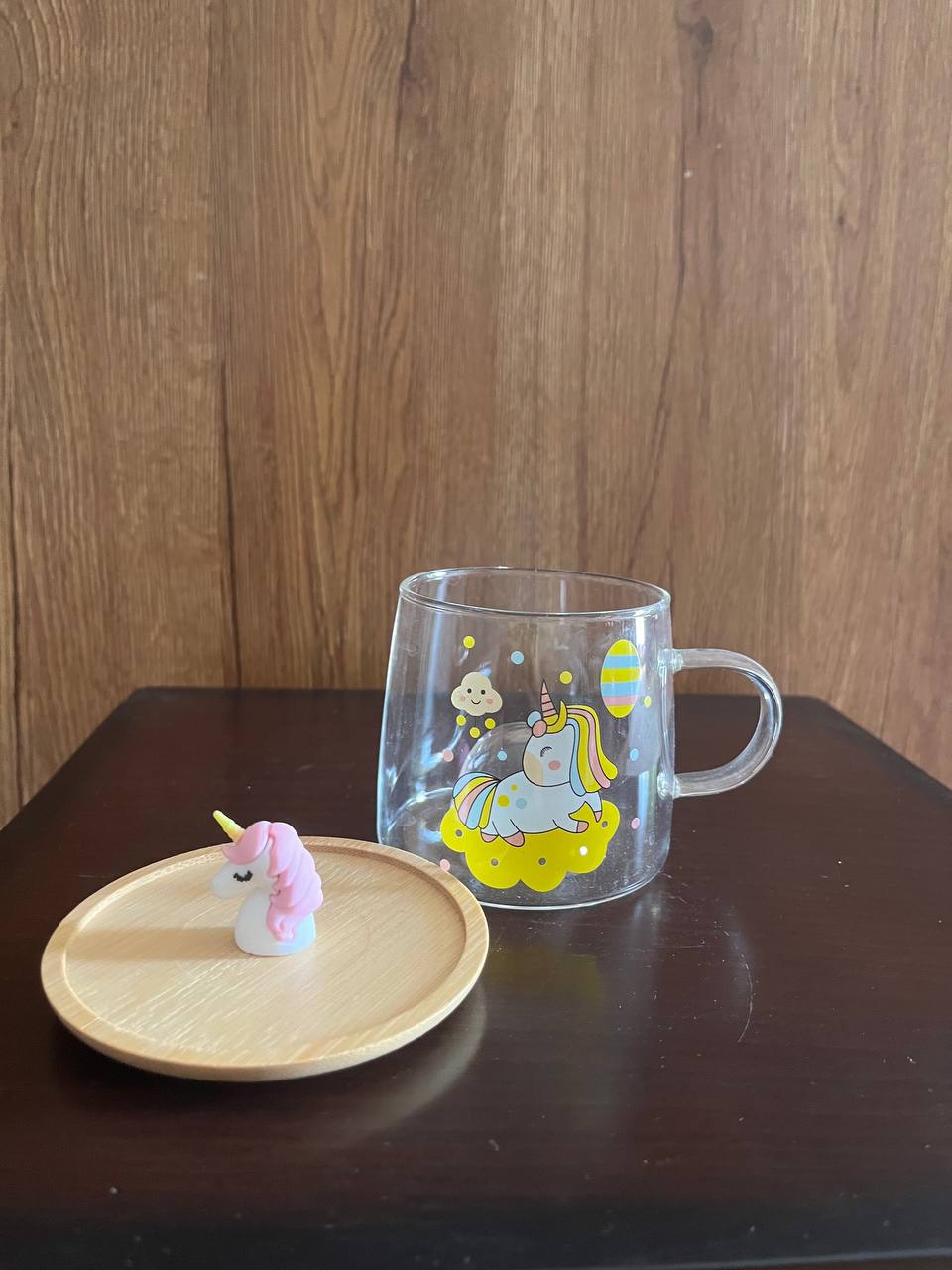 ماگ کریستال به همراه درب بامبو طرح یونیکورن