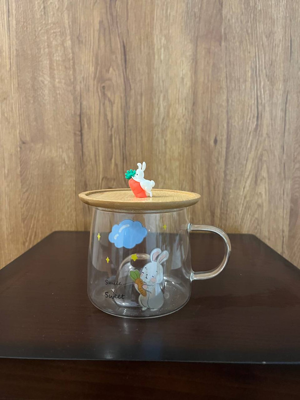 ماگ شیشه ای درب بامبو طرح خرگوش